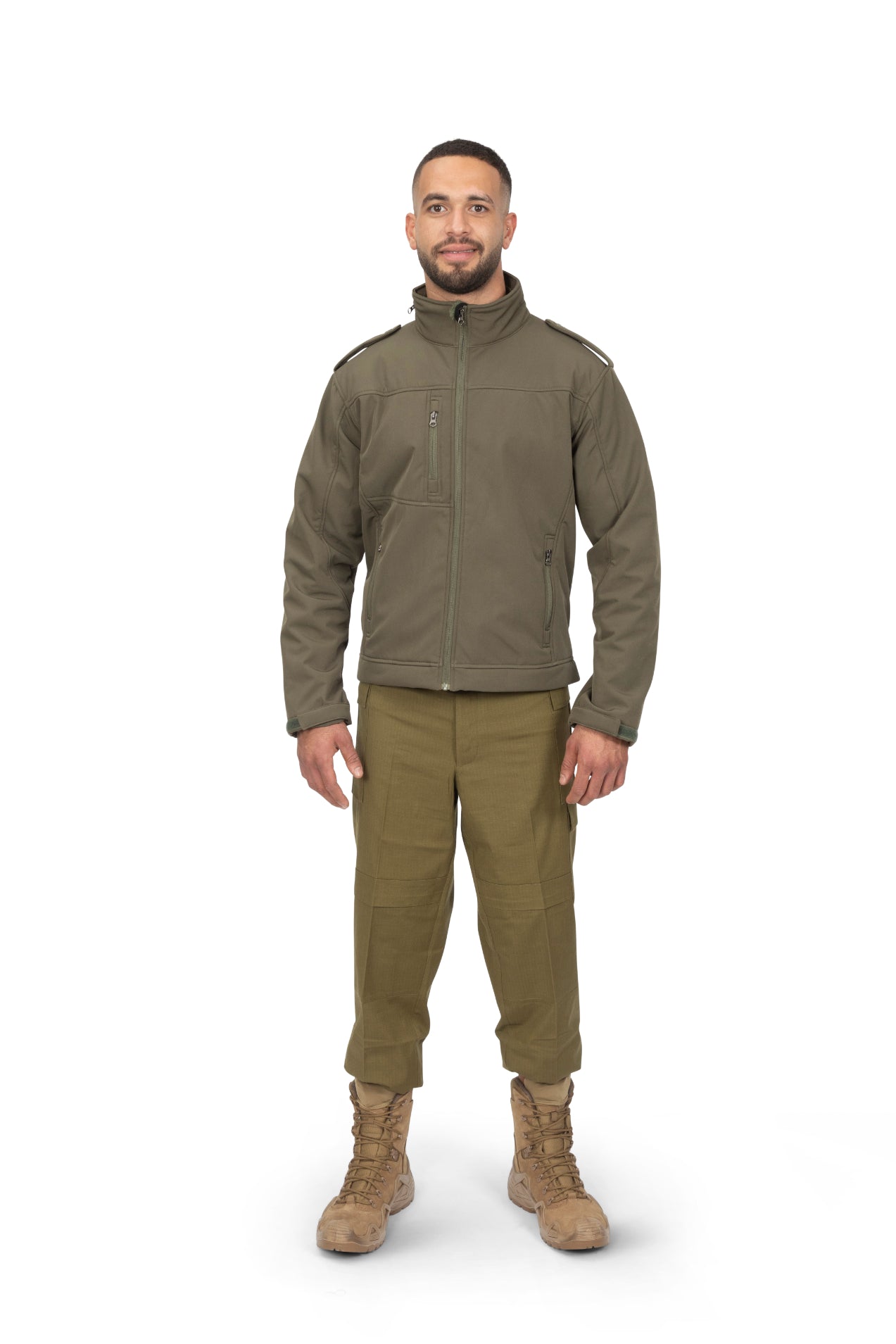 Lightweight, insulated, and breathable softshell jacket designed for soldiers and field personnel. Offers natural warmth, wind and water resistance, and quiet flexibility for extended missions.