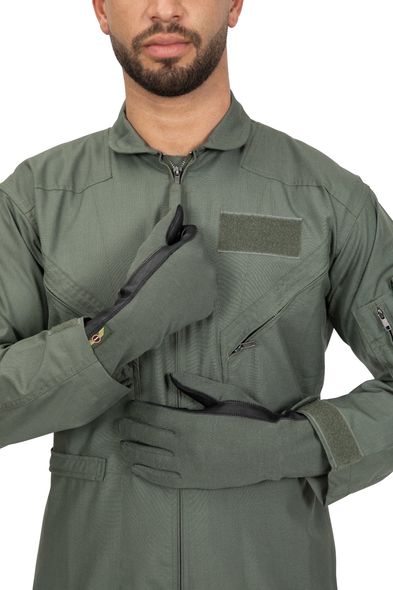 Lightweight, fire-resistant Nomex® gloves with leather palms for grip, dexterity, and touchscreen compatibility. Designed for pilots, armored crews, and combat missions in high-heat environments.